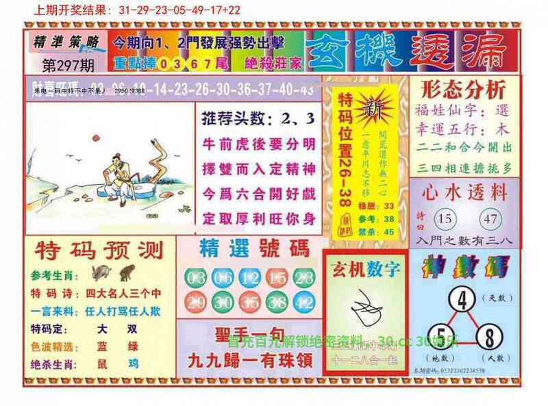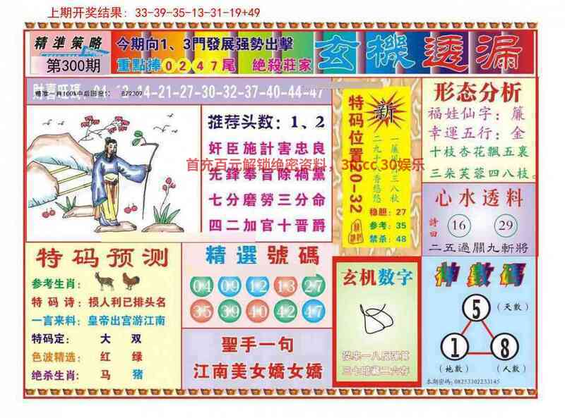 302期:特码暗语/曾道人救世心经/攻特料/六合心经/平码生肖点将